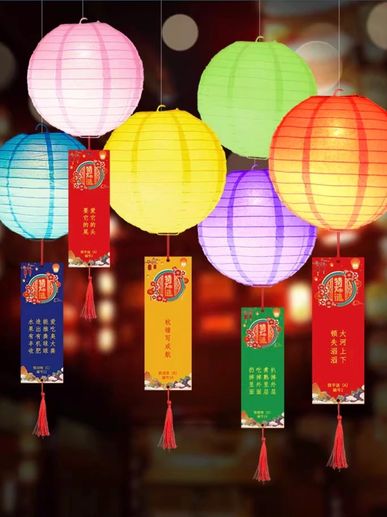 普通灯谜:灯笼上悬挂灯谜纸条,猜对答案即可取走谜面