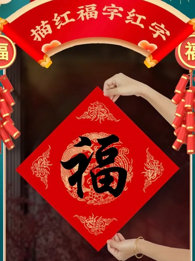 使用毛笔和金墨书写福字